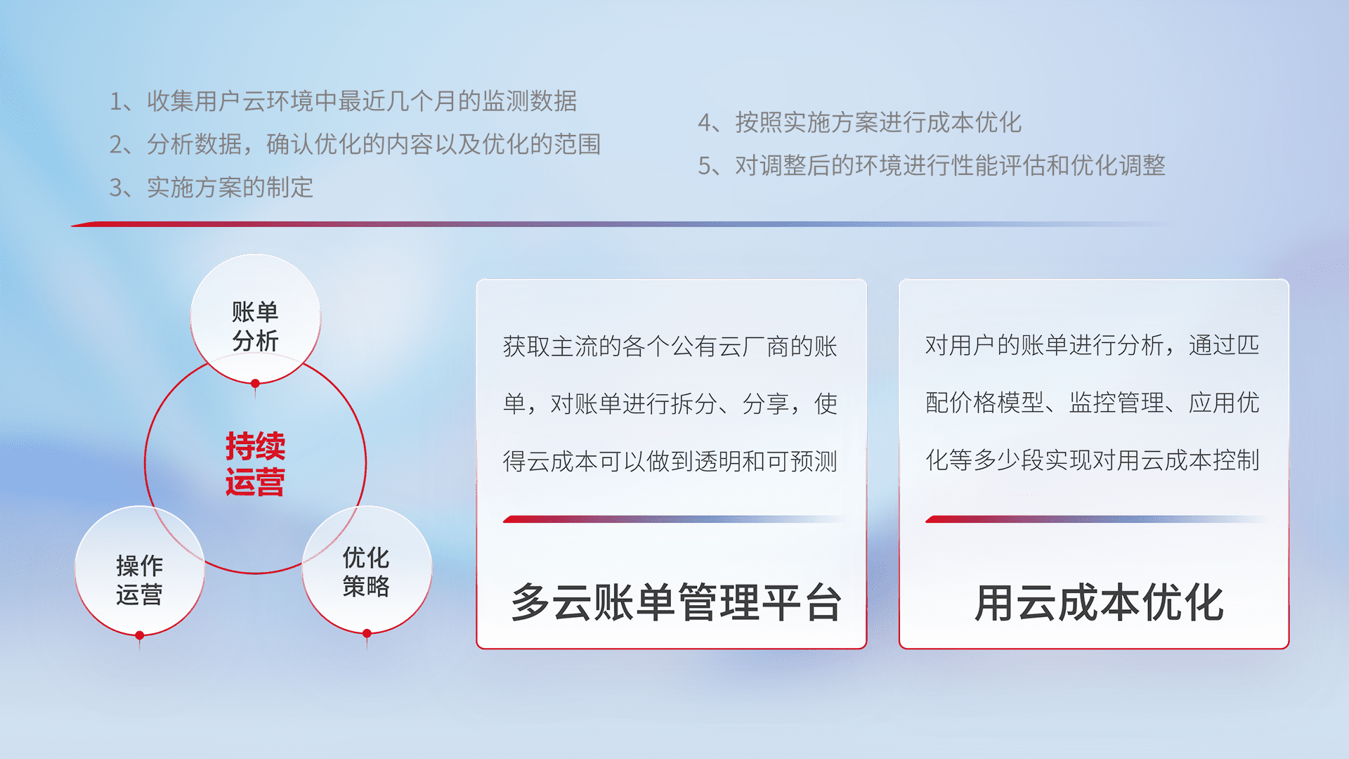监控业务系统资源开销,,,对资源的消耗精确计量,,实现费用的透明化管理,,,不断提升资源使用率,,,调整资源购买方式,,,,降低资源费用成本,,,,用云成本可预测、、、用云费用可优化,,云资源配额有据可依。。